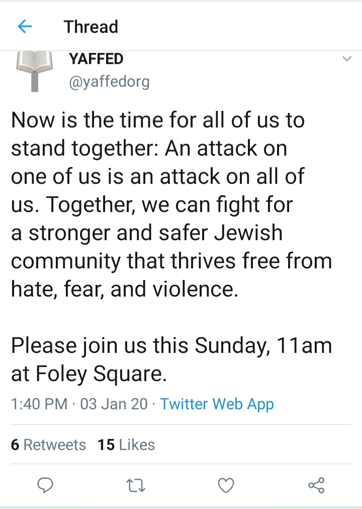 7. As quoted: “It’s a travesty to give YAFFED a platform in which they can claim solidarity with their religious brethren when their entire purpose is to tear us down.”