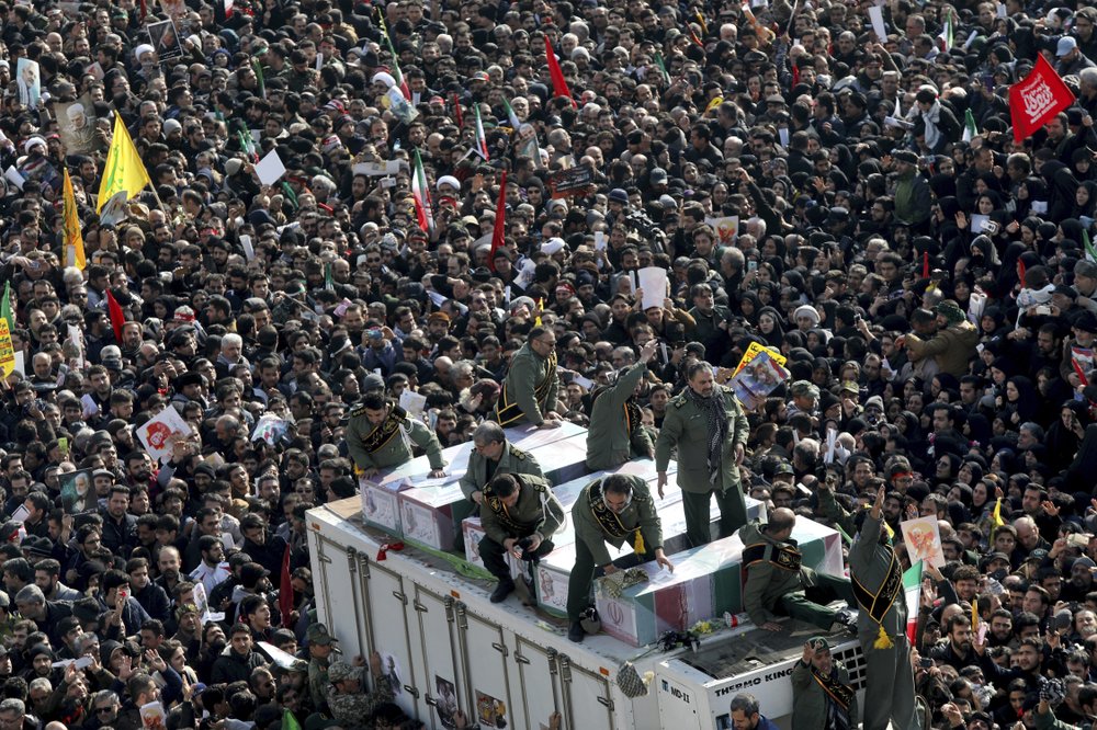 The procession for Iranian Revolutionary Guard Gen. Qassem Soleimani drew a crowd of mourners and followers, said by police to be in the millions, on Monday in Tehran, where Soleimani’s replacement vowed to take revenge for his killing. Additionally, Tehran has abandoned the remaining limits of its 2015 nuclear deal with world powers in response to the slaying while in Iraq, the parliament has called for the expulsion of all American troops from Iraqi soil.