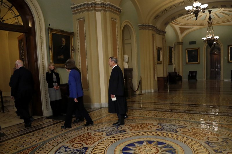 Roberts made the short trip from the Supreme Court to the Capitol on Thursday to be sworn in as the trial’s presiding officer, a duty that is mandated by the Constitution.