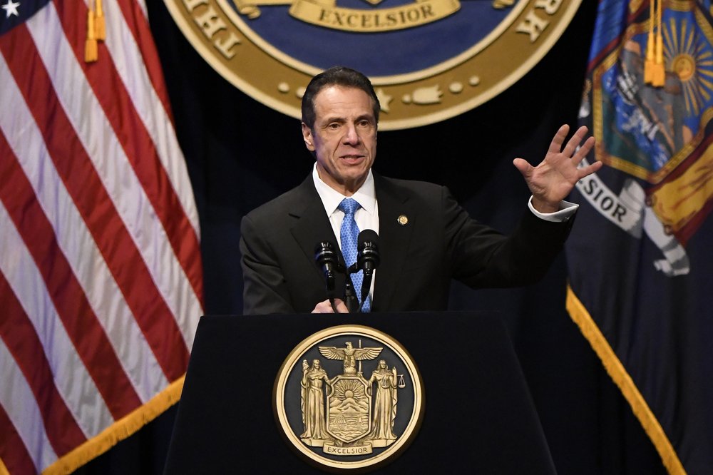 New York Gov. Andrew Cuomo delivers his State of the State address at the Empire State Plaza Convention Center on Wednesday, Jan. 8, 2020, in Albany, N.Y. (AP Photo/Hans Pennink)