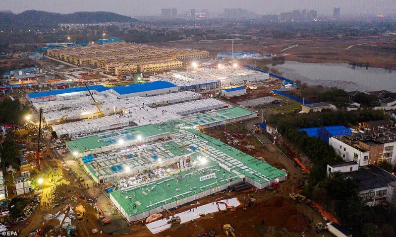 Photos in state media showed workers in winter clothing, safety helmets and the surgical-style masks worn by millions of Chinese in an attempt to avoid contracting the virus. Trucks were shown arriving in the middle of the night carrying rolls of insulation and other materials.