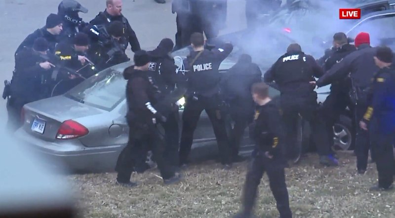 Clay County Sheriff’s deputies threw out Stop Sticks and several patrol cars surrounded the car and stopped it as it approached the crowd near Union Station, police said. Video posted by WDAF-TV showed officers approaching the car with weapons drawn before taking two people into custody. The arrest happened around three hours before the parade began, and no one was injured.