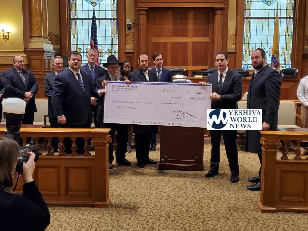 A check of nearly $50,000 organized by YWN using The Chesed Fund was presented on Tuesday to the family of fallen Hero Jersey City Detective Joseph Seals.