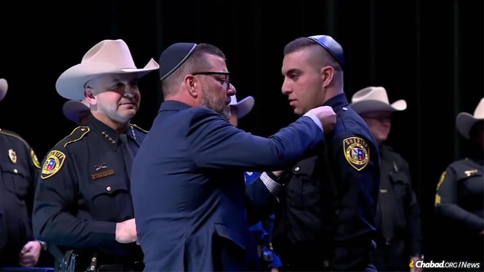 In early January, Frydberg graduated from the Bexar County Sheriff’s Academy as a sheriff’s deputy, proudly displaying his kippah at the graduation ceremony.