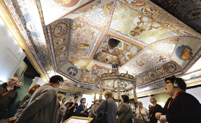 People visit the POLIN Museum of the History of Polish Jews in Warsaw, Poland, Wednesday, Feb. 12, 2020. A long stalemate over the future independence of the landmark Jewish history museum is building toward a crucial turning point after the former director — who won a competition for a second term but whom Poland's populist government refuses to reinstate — offered to renounce the job.(AP Photo/Czarek Sokolowski)