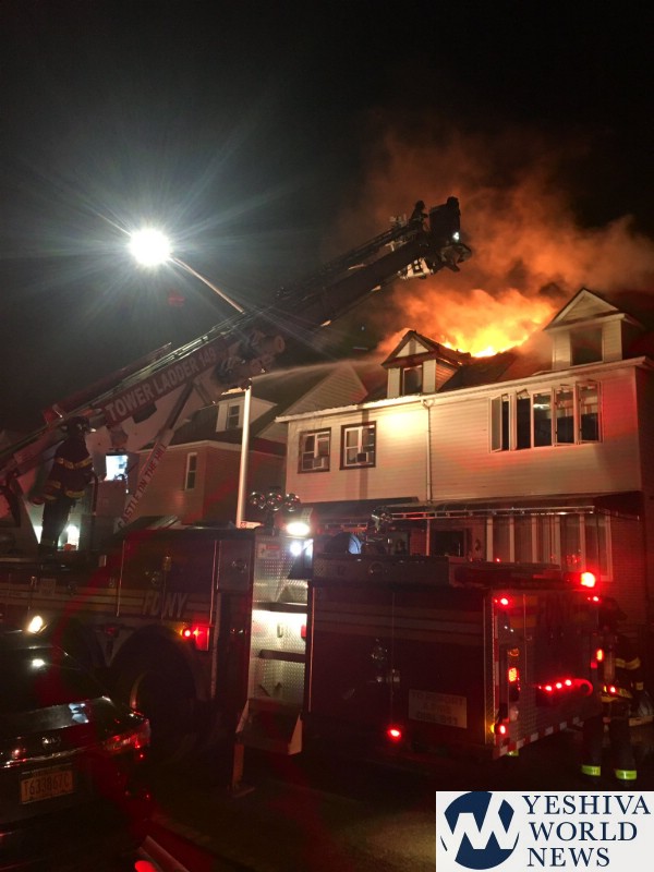 A massive three-alarm fire burned through a two-story home on 85th Street in Bensonhurst early Shabbos morning.