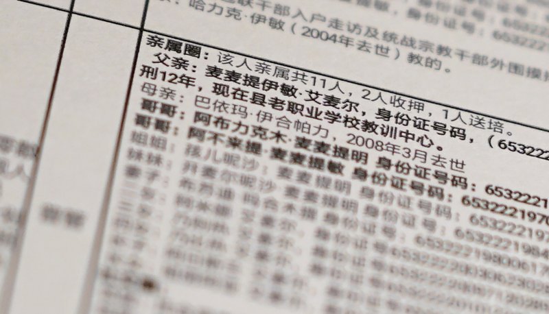 The database obtained by The Associated Press profiles the internment of 311 individuals with relatives abroad and lists information on more than 2,000 of their relatives, neighbors and friends. Each entry includes the detainee’s name, address, national identity number, detention date and location, along with a detailed dossier on their family, religious and neighborhood background, the reason for detention, and a decision on whether or not to release them. Issued within the past year, the documents do not indicate which government department compiled them or for whom.