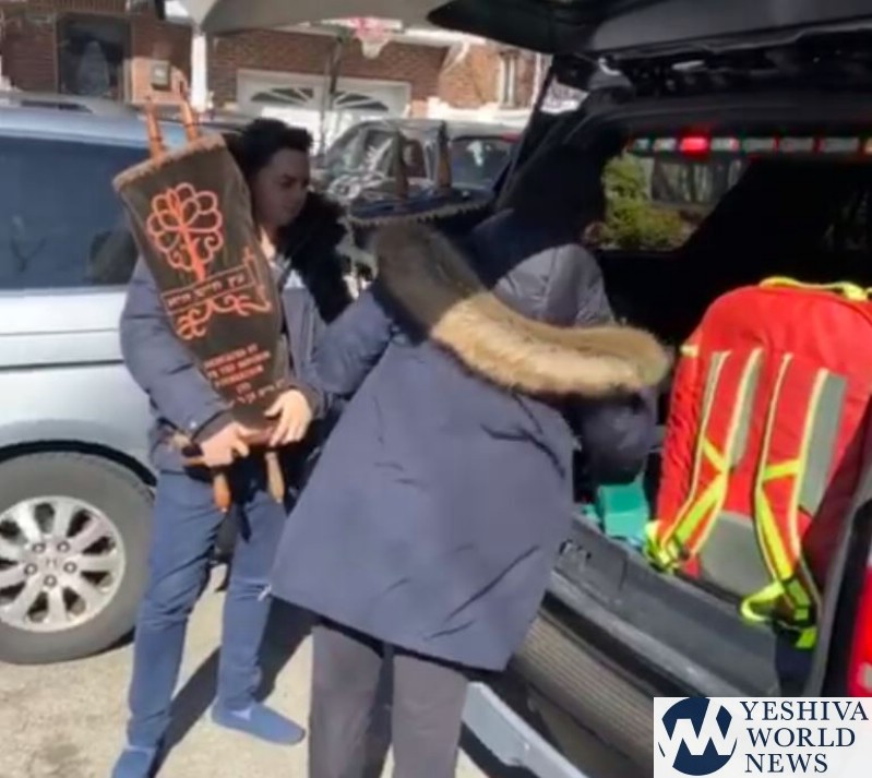 In one video provided to YWN, the Sifrei Torah were being removed from the “Jewish Heritage Center of Queens”, and placed into the vehicle of a Queens Hatzalah volunteer.