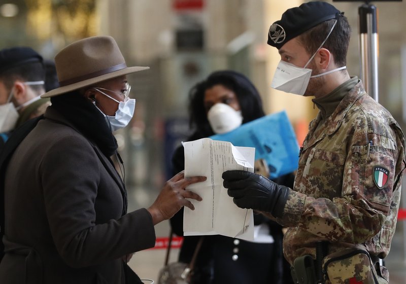 For travelers and commuters, procedures at Milan’s main train station were tightened significantly. Police officers in masks backed by pairs of masked armed soldiers checked tickets and documents of people arriving and departing.