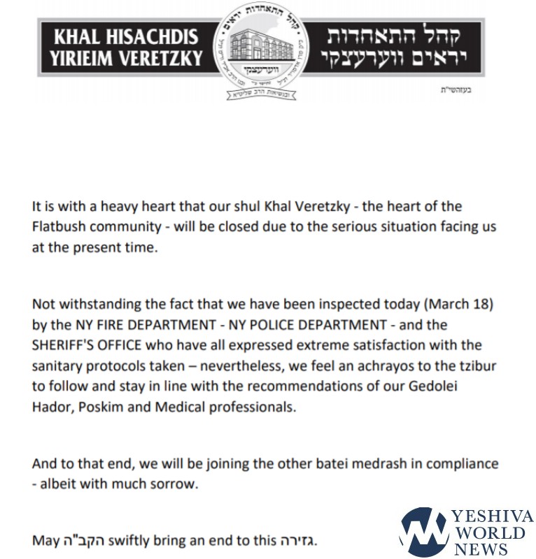 Meanwhile, later that night, the Shul reached out to YWN to inform us that the Shul was being closed, and sent us a flier to post (which was published immediately on the YWN Live Blog).