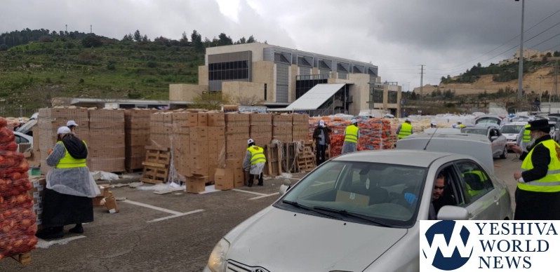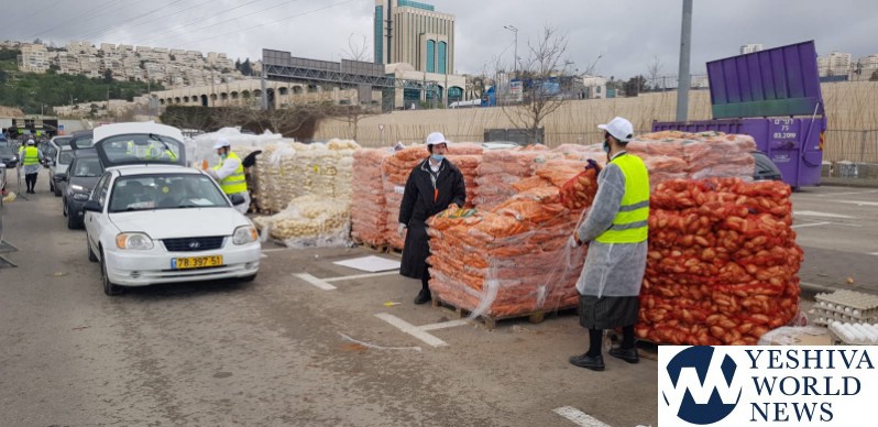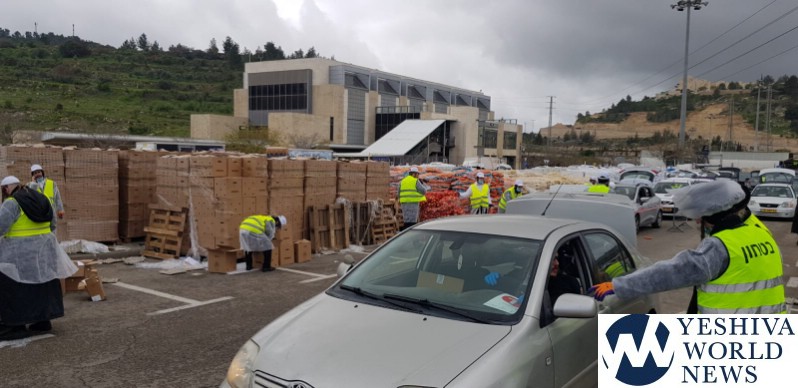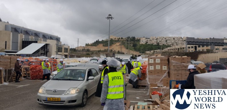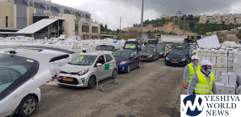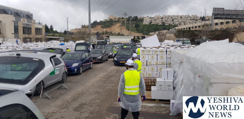 The change in venue was prompted by the deadly COVID-19 virus and was coordinated with both the police and the Ministry of Health. Initially, there was trepidation as to whether Rabbi Stern would be permitted to run the distribution this year. At a meeting with officials he explained, “There will anyway be a run on the food markets even without my distribution.” The decision was made to only allow one family member from each family.