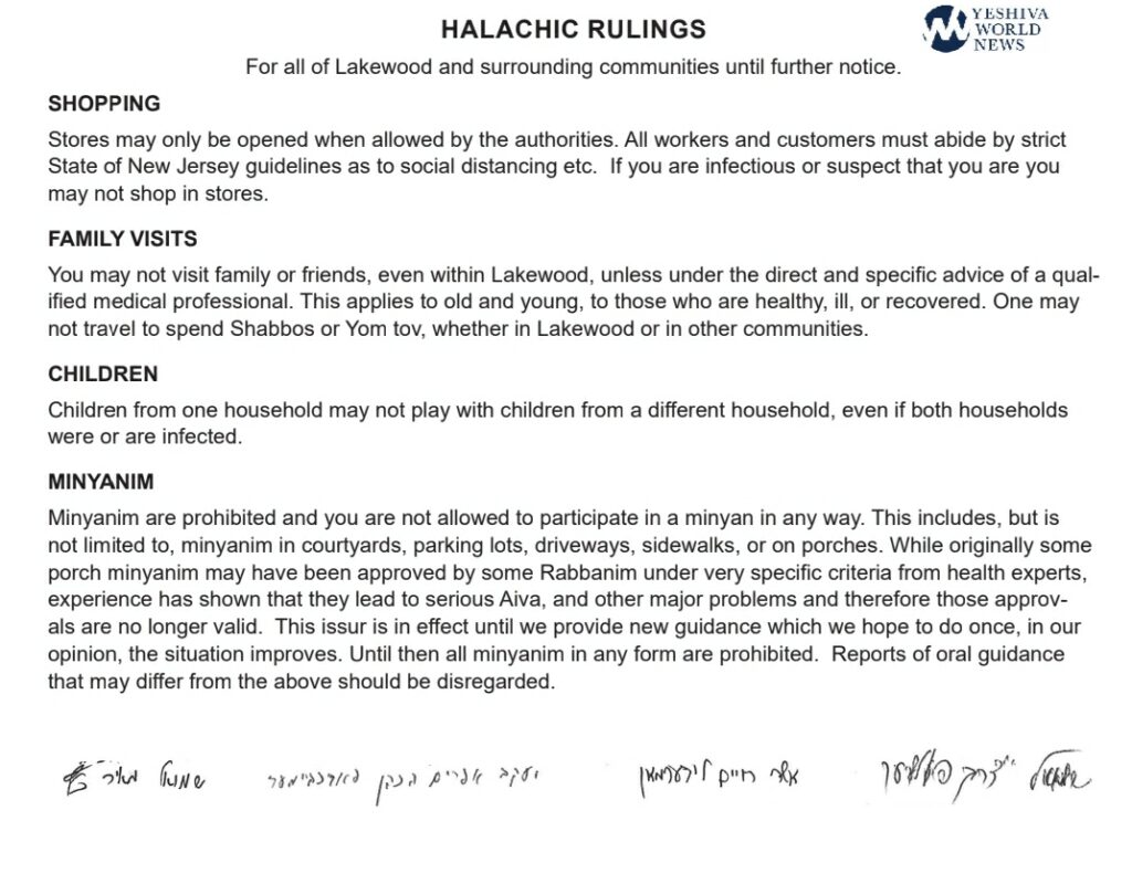 Last night, the Poskim of Lakewood’s Beth Midrash Gavoha released protocols as to how Lakewood residents should conduct themselves in light of the Corona virus, and Rabbis and other residents of the Five Towns have reacted to the guidelines.