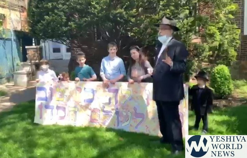 Family and friends gathered on Union Street to welcome Rabbi Eliezer Gold, a fundraiser for Oholei Torah school in Crown Heights, upon his return home after he was on a ventilator for 28 days with COVID-19.