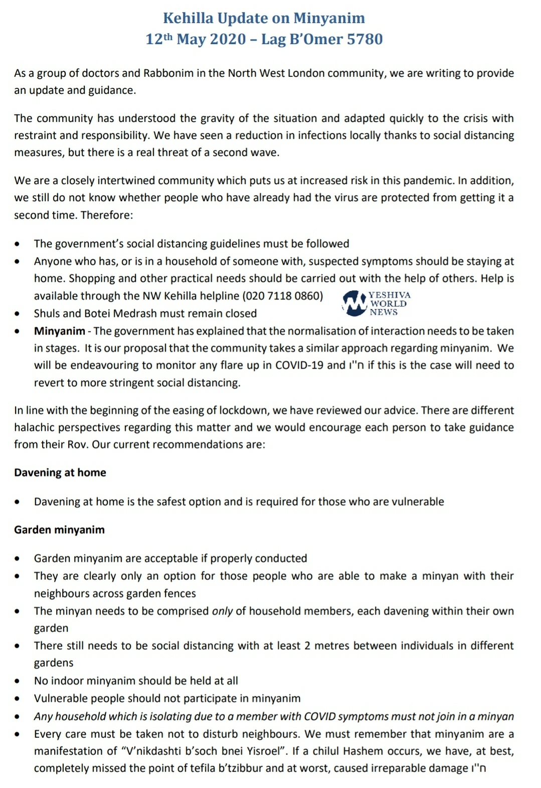 As a group of doctors and Rabbonim in the North West London community, we are writing to provide an update and guidance.