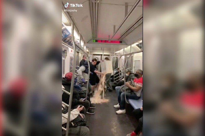 A TikTok user posted a video of himself dumping a tub of cereal onto the floor of a subway car during the pandemic — an apparent prank the MTA on Wednesday called “despicable.”