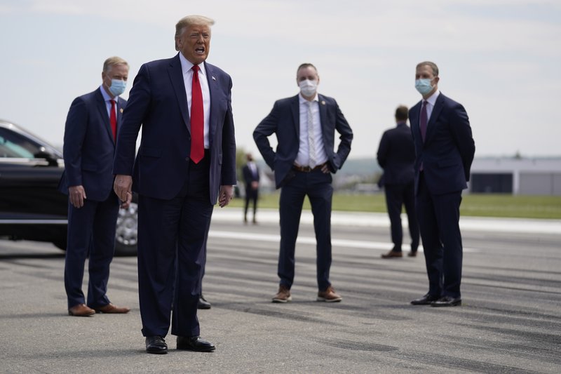 While health and safety precautions around Trump have increased in recent days, he has yet to be seen in public wearing a mask. The Centers for Disease Control and Prevention says Americans should wear cloth face coverings in public in situations where social distancing is difficult to prevent unknowingly spreading the virus. Trump is tested daily for the virus; the White House says he is negative.