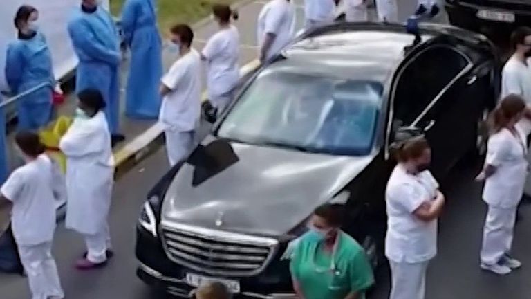 SILENT PROTEST: Belgium Prime Minister Sophie Wilmès received a cold reception from the medical staff at Saint Peter hospital in Brussels during her official visit to the hospital.