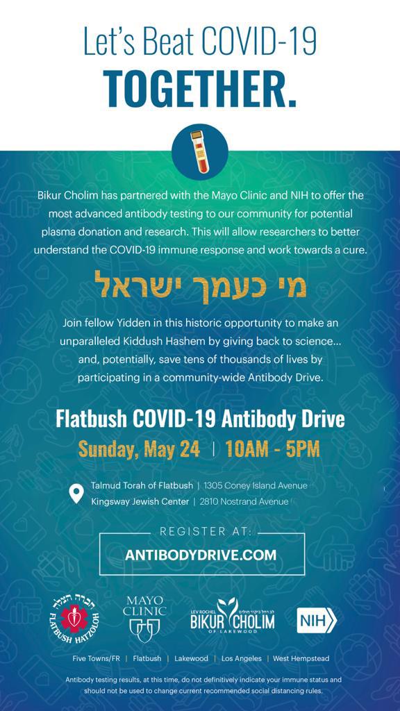 It will allow local doctors and Rabbinic figures to determine the true extent of the immune response in your neighborhood. We will be testing individuals with symptoms (or confirmed COVID) and those without any symptoms.