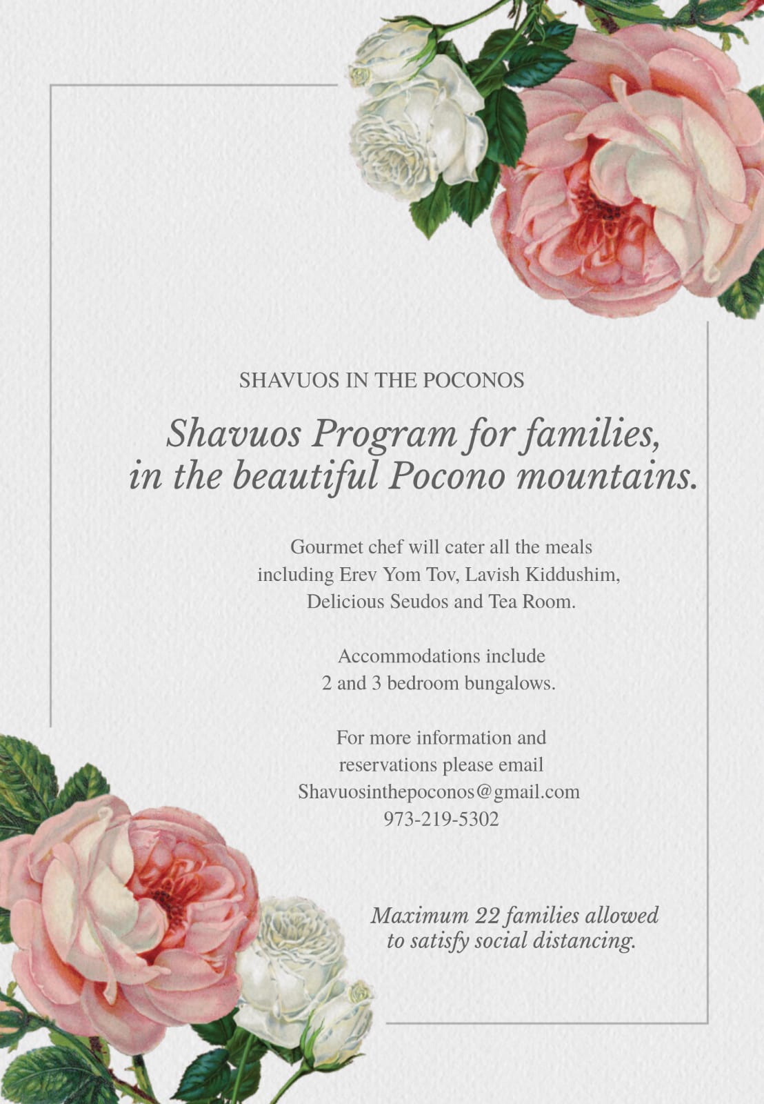 For More Information and reservations please email [email protected] or call 973-219-5302