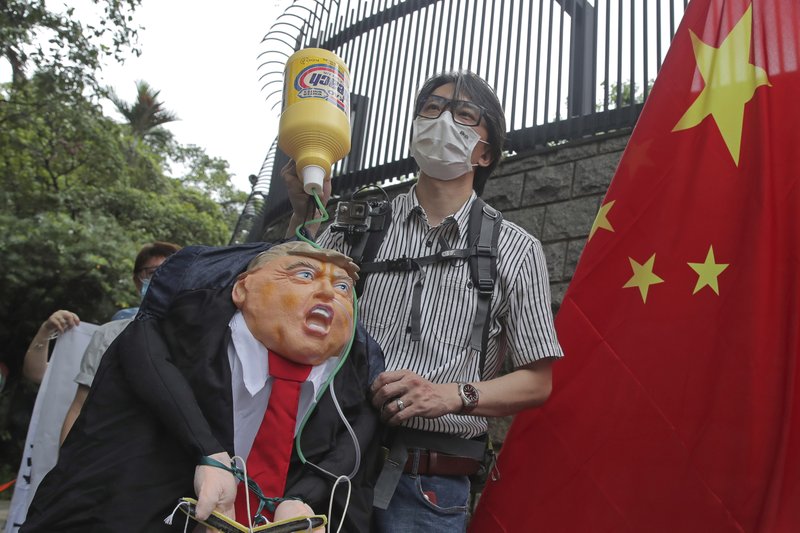 In Hong Kong, small groups of Beijing supporters marched to the U.S. Consulate on Saturday carrying Chinese flags and signs protesting “American interference in China’s internal affair” and calling Trump “shameless and useless.”