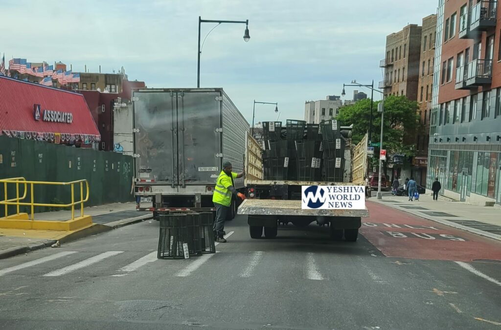 Photos have been submitted to YWN of the NYC Sanitation Department driving around and picking up trash bins from street corners.