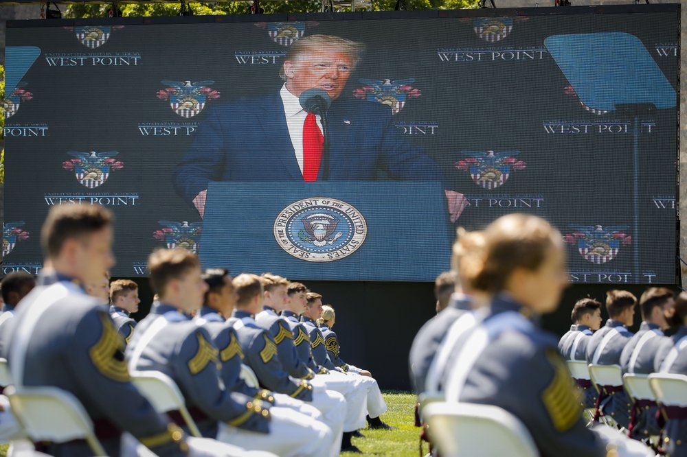 In the speech, Trump leaned into his “America first” brand of foreign policy without uttering the phrase, telling the Army’s newest officers their job is “not to rebuild foreign nations, but to defend and defend strongly our nation from our foreign enemies.”