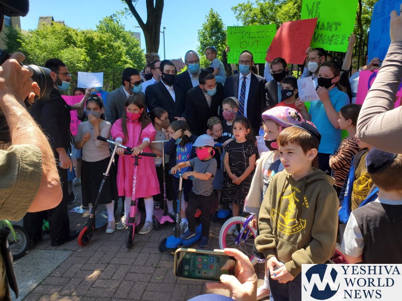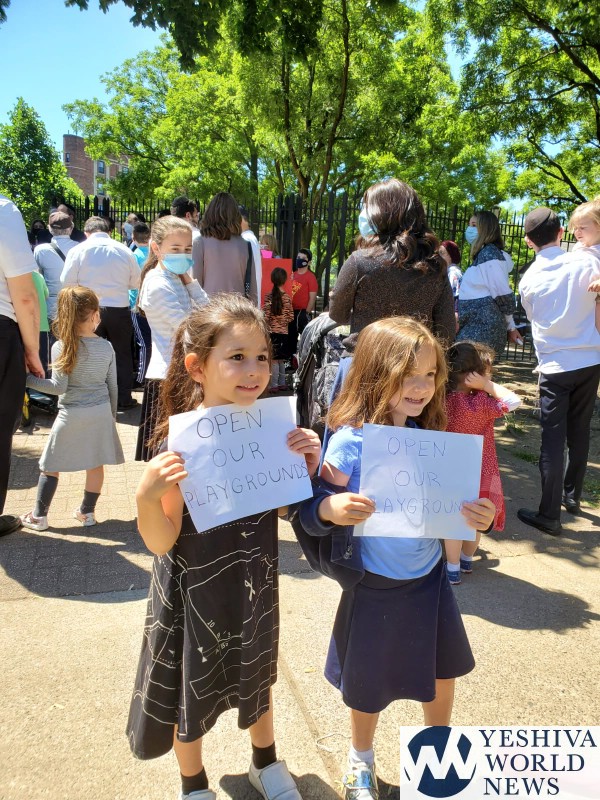 Heshy Tischler of Boro Park has been a vocal critic of NYC Mayor DeBlasio, demanding that the city reopen parks following an announcement by Governor Cuomo saying that as far as he was concerned, all park could be reopened. Cuomo said it was up to local municipalities to make that decision. DeBlasio decided to keep them shut, and Tischler has been on a mission protesting the closure. Last week he was seen with around 100 children protesting in Williamsburg, and on Sunday in Boro Park.