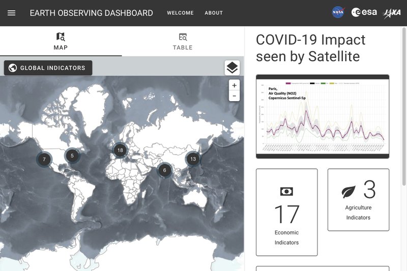 Using data from 17 satellites, three space agencies have created a website that serves as a global dashboard for temporary changes observed from orbit. The European Space Agency, Japan Aerospace Exploration Agency and NASA Thursday unveiled the Earth Observing Dashboard at eodashboard.org.