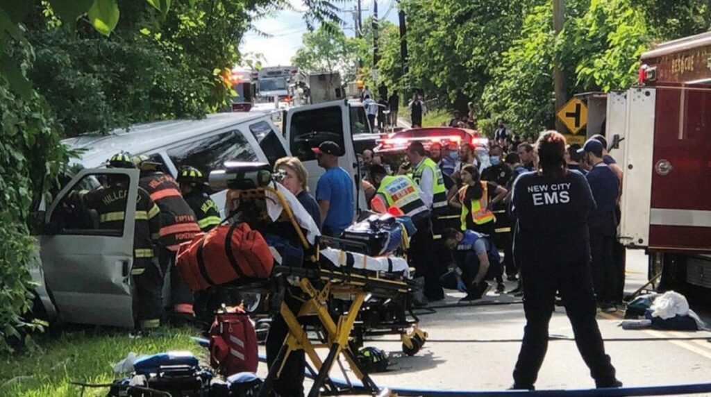 The accident occurred at around 4:30PM last Monday, when the family’s van left the roadway and and slammed into a tree. Several of the occupants had to be extricated by members of the Hillcrest and New City Fire Departments. All of the occupants were transported to either Nyack Hospital or Westchester Medical Center by Hatzolah and Spring Hill Ambulance.