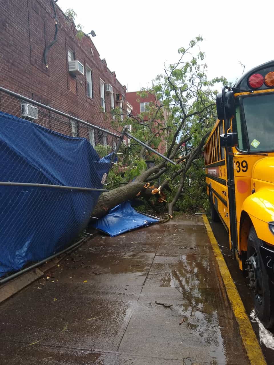As strong thunderstorms moved through the area on Monday evening, there were trees down and flooding all over Brooklyn.