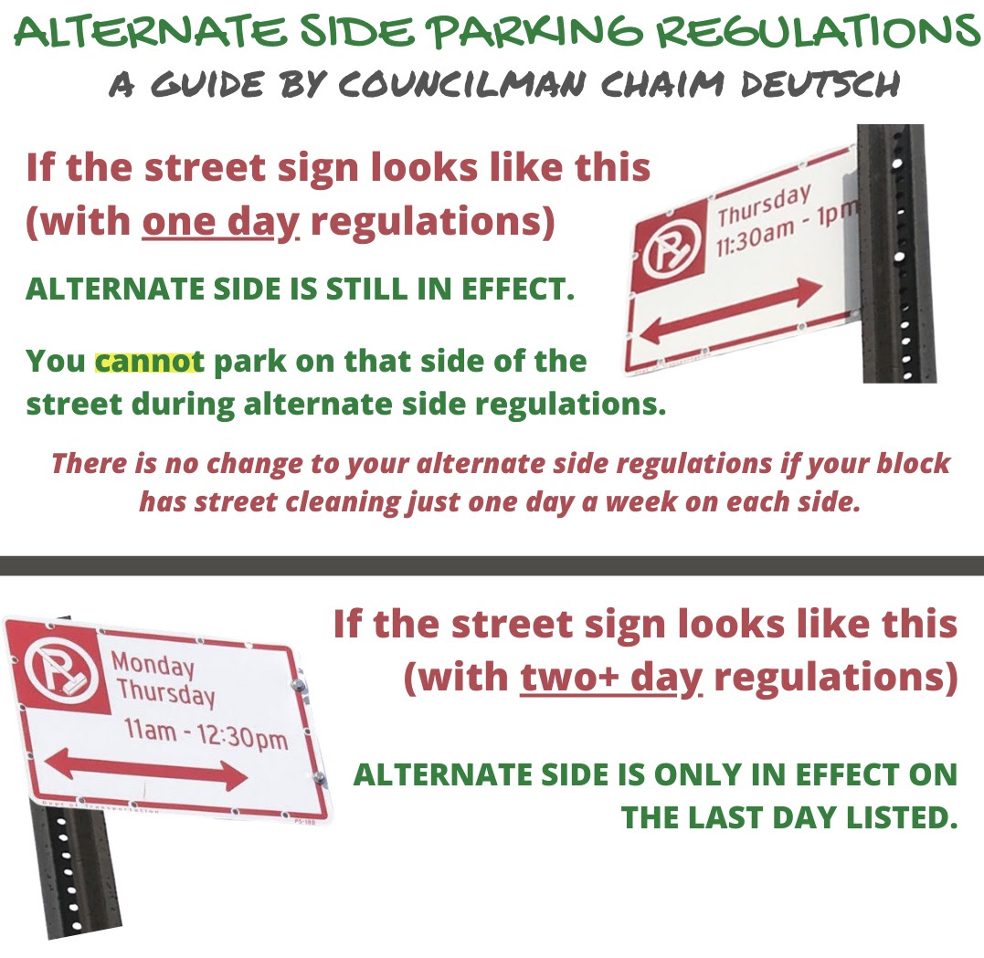 Many people received summonses in NYC this week due to confusion about the new alternate side parking regulations. NYC Councilman Chaim Deutsch gave YWN the following statement: