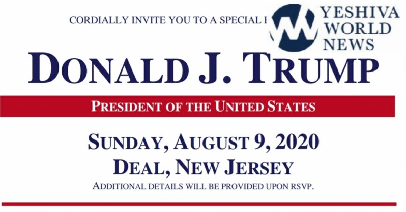 Sources tell YWN that the event will be held at the home of the late Stanley Chera Z”L, a close friend of Trump, and one of the most prominent members of the Sephardic Syrian communities in Brooklyn and Deal NJ. Mr. Chera passed away in April from COVID-19. The President would frequently mention Mr Chera in his speeches.