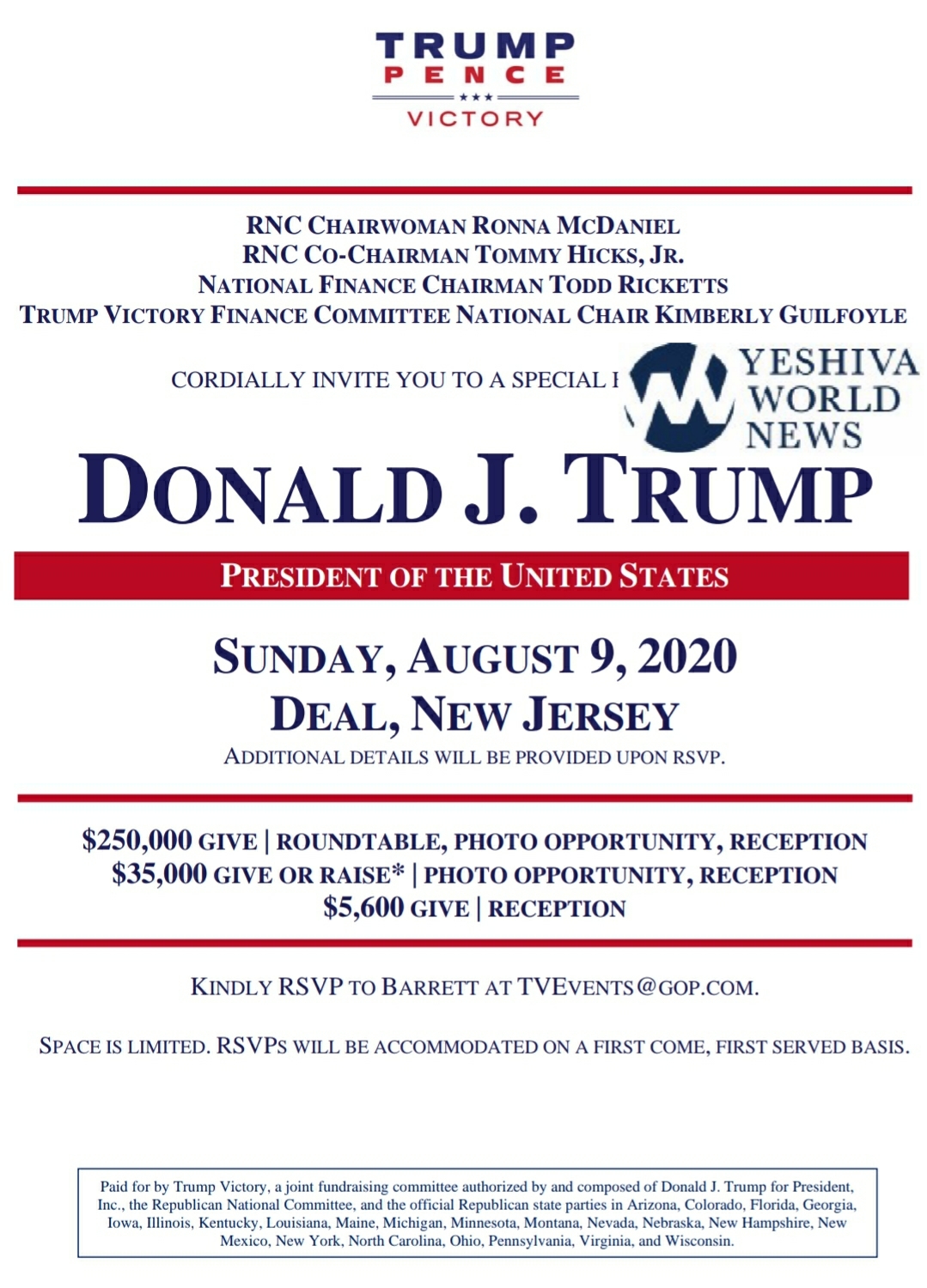 I guess this fundraiser is expecting a tiny turnout, due to NJ gathering restrictions, it can’t be very large.