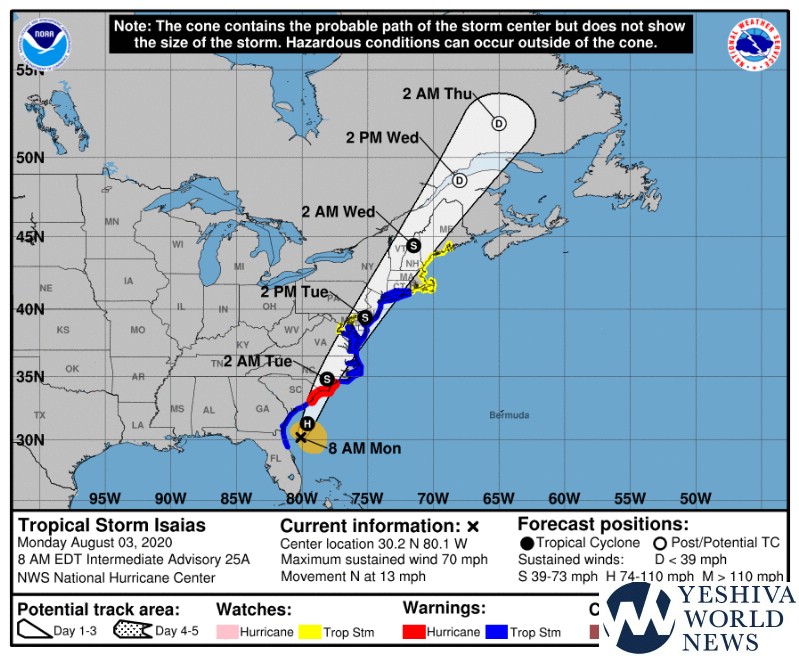 A Tropical Storm Watch was issued for New York City and Long Island, as well as parts of the Hudson Valley, New Jersey and Connecticut ahead of Isaias, which is expected to hit the Tri-State late Monday and Tuesday.