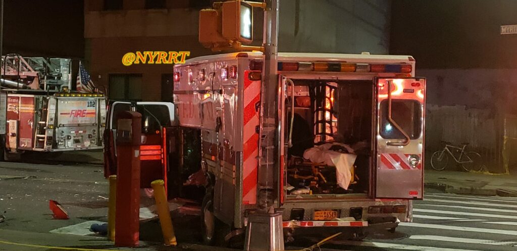 The crash at Myrtle and Throop avenues in Bedford-Stuyvesant, involved two Fire Department vehicles happened shortly before 1:00AM. The fire truck was racing to a fire when it broadsided the ambulance, authorities said.