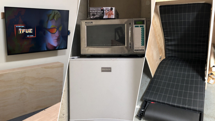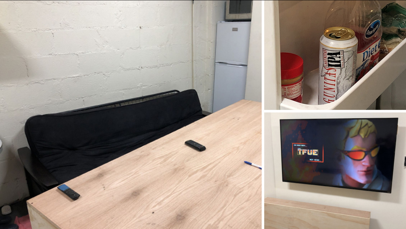 Investigators found the room, which had wooden cabinets designed to conceal the TV and futon, according to the report.