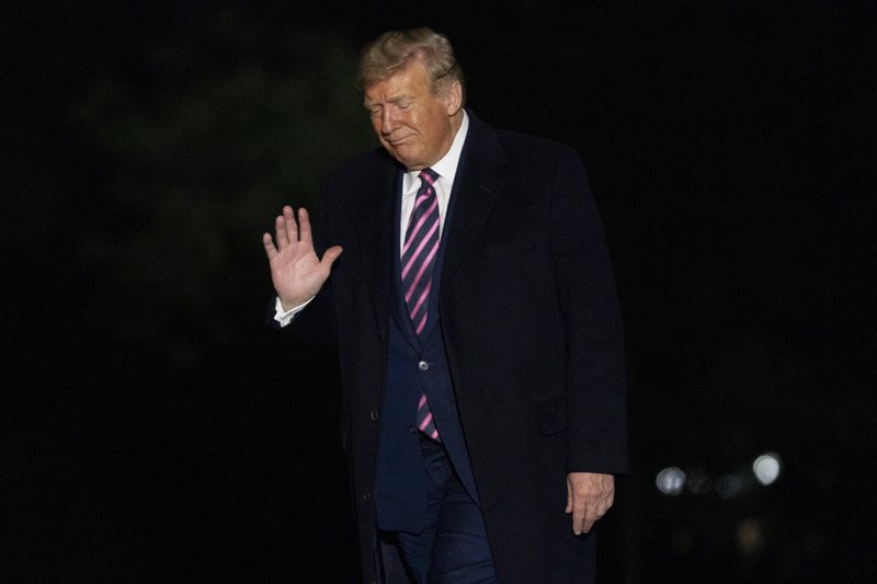 President Donald Trump arrives at the White House in Washington, late Tuesday, Sept. 22, 2020, following a short trip from Andrews Air Force Base, Md., after attending a rally in Pittsburgh. (AP Photo/Andrew Harnik)
