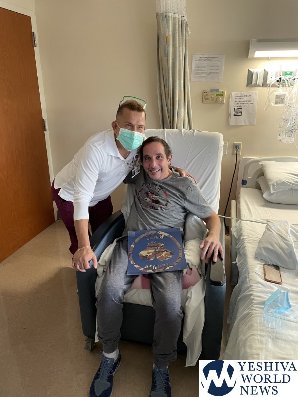 He celebrated Sukkos and Simchas Torah in Mount Sinai medical center, together with the Hospital Chaplain, Rabbi Mendy Levy. “He was transported into another world and nothing could deter him from observing the Holidays in the best way possible”. He was able to make a Shehechiyanu and Bentch the Lulav and Esrog in the Sukkah – while enjoying the outdoors for the first time in many months. The last day of Yom Tov he danced and sang with a Torah in his lap, with tears of joy and gratitude streaming down his face.