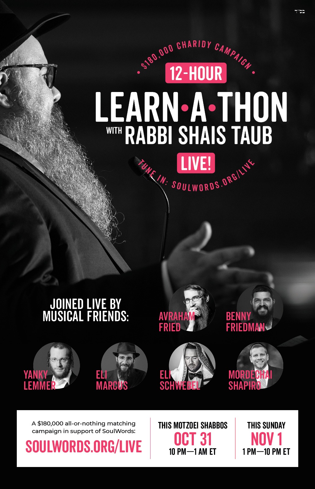 You can donate early at SoulWords.org/LIVE right now. Livestream will be Tonight Motzei Shabbos 10PM-1AM ET and Sunday 1 PM-10PM ET.