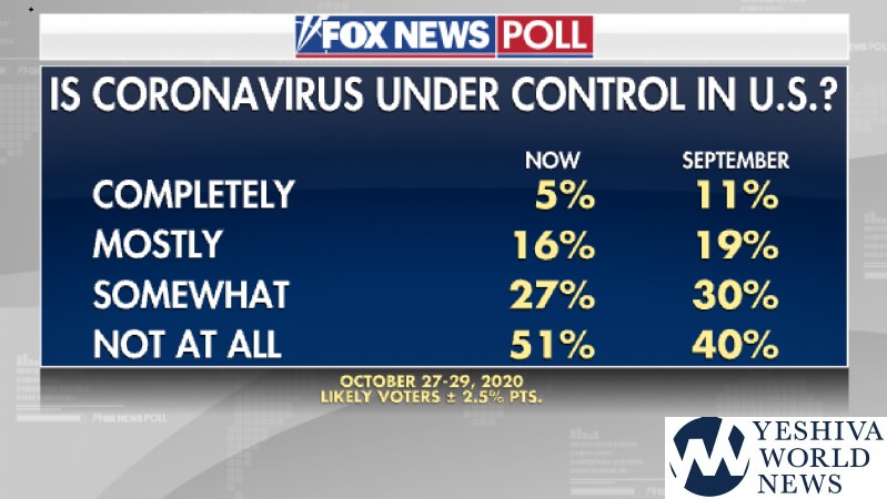 - Just over half, 51 percent, say the Coronavirus is “not at all” under control – up from 40 percent in early September.