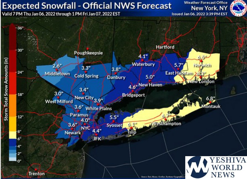 The New York City area could get up to six inches of snow overnight and into Friday morning and the Department of Sanitation has issued a Snow Alert for the city.