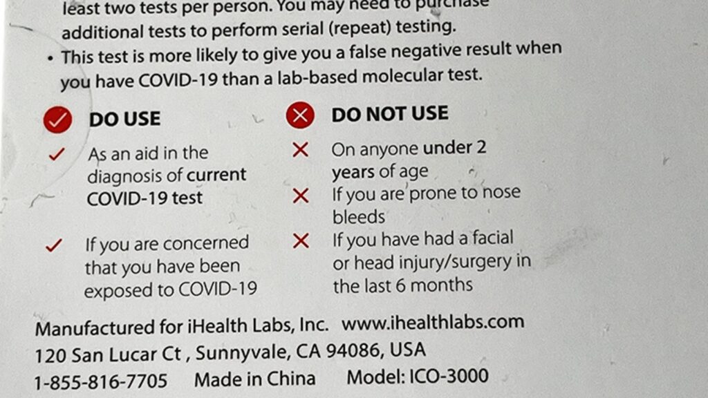 The tests Hemmer received are developed by iHealth Labs Inc. Though the company is headquartered in California, the label says the tests are produced in China.