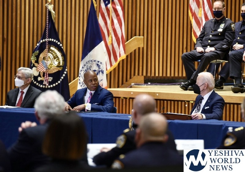 The president was joined by New York lawmakers, Attorney General Merrick Garland, Gov. Kathy Hochul and Mayor Eric Adams, a former police captain. Once an outspoken critic of his own department and someone who was beaten by police as a teenager, Adams portrayed himself during his campaign as someone who could bridge the divide between the New York Police Department and activists pushing for major change.