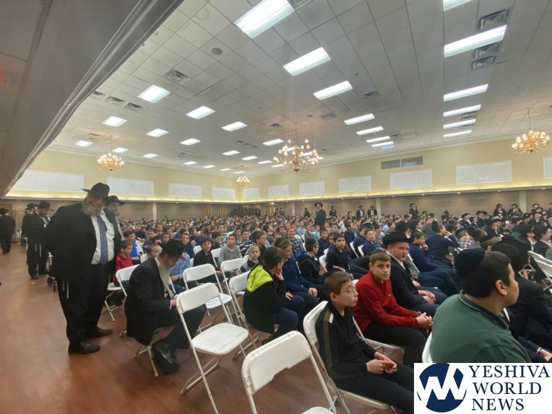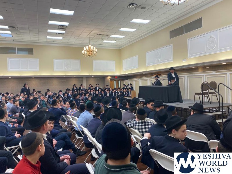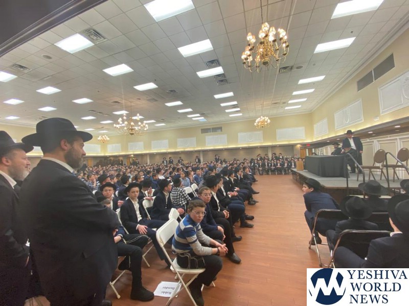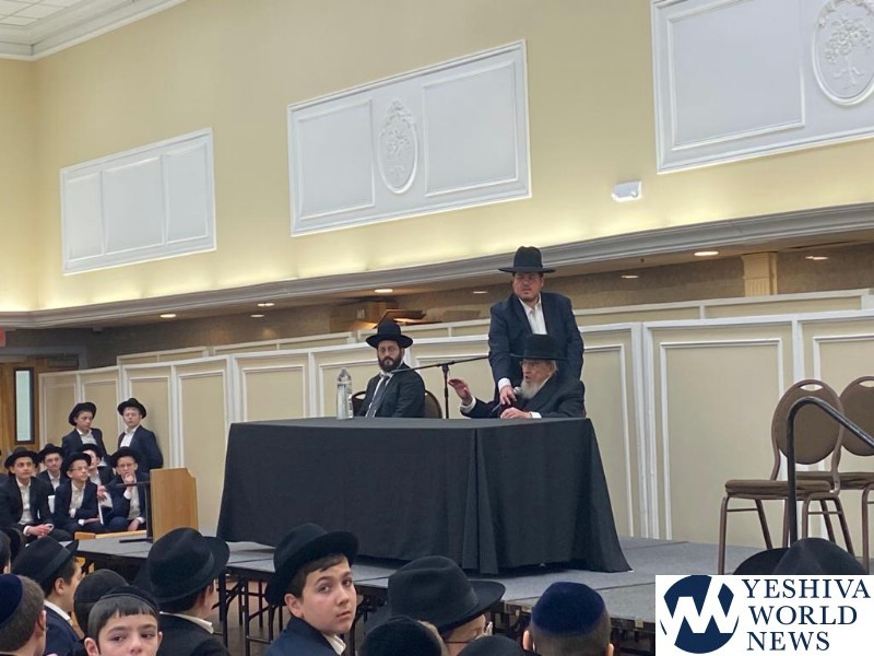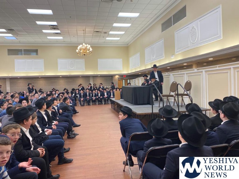 On Thursday morning, HaRav Boruch Mordechai visited the Yeshiva K’tana elementary school, where he delivered a shmuess to the school’s hundreds of talmidim.