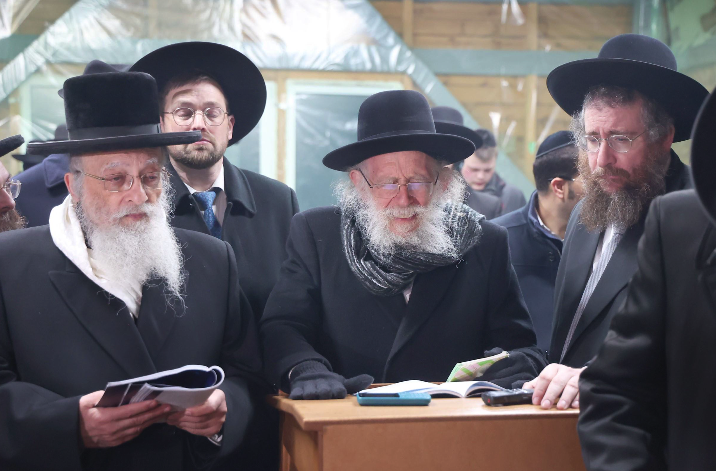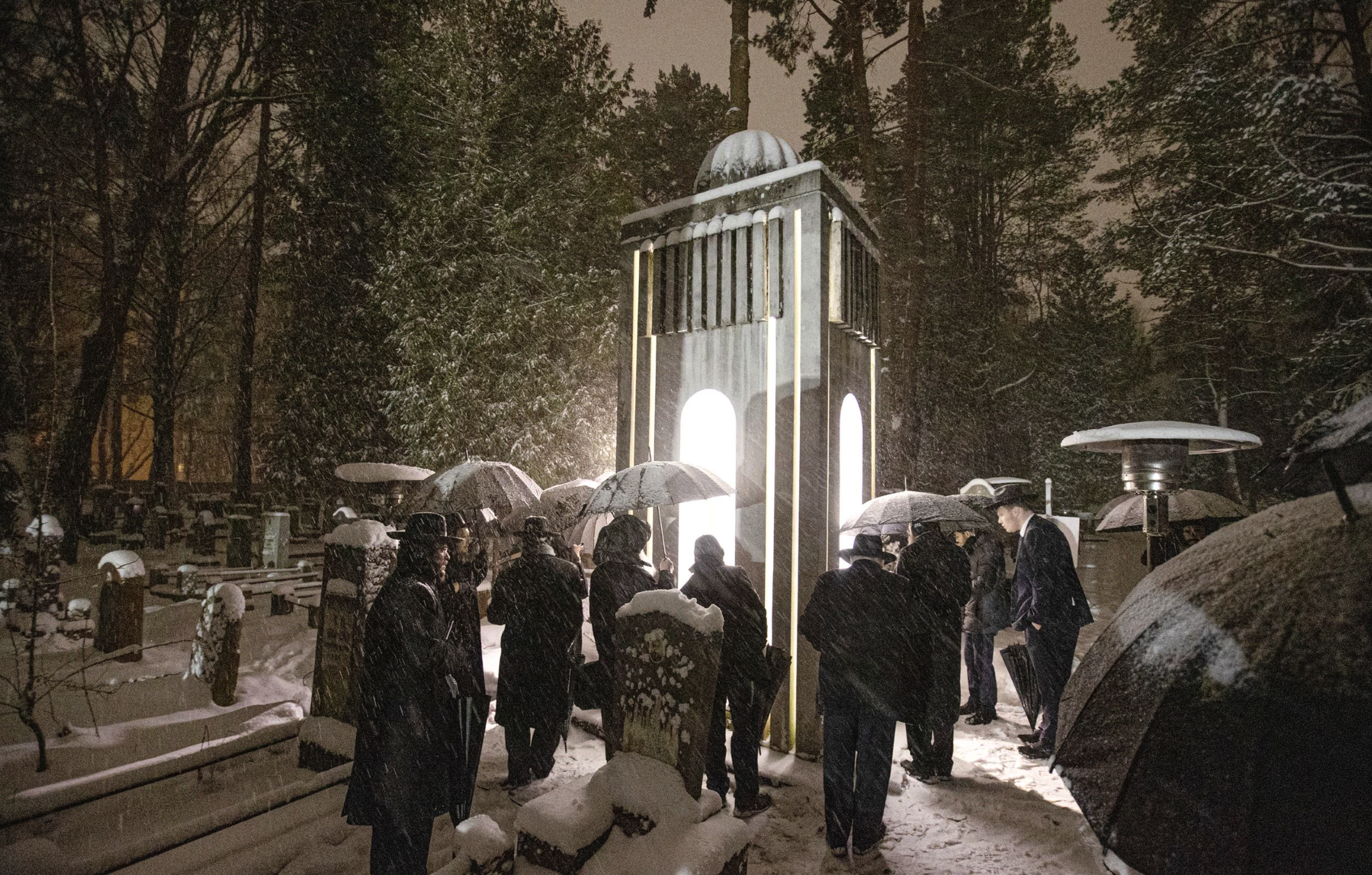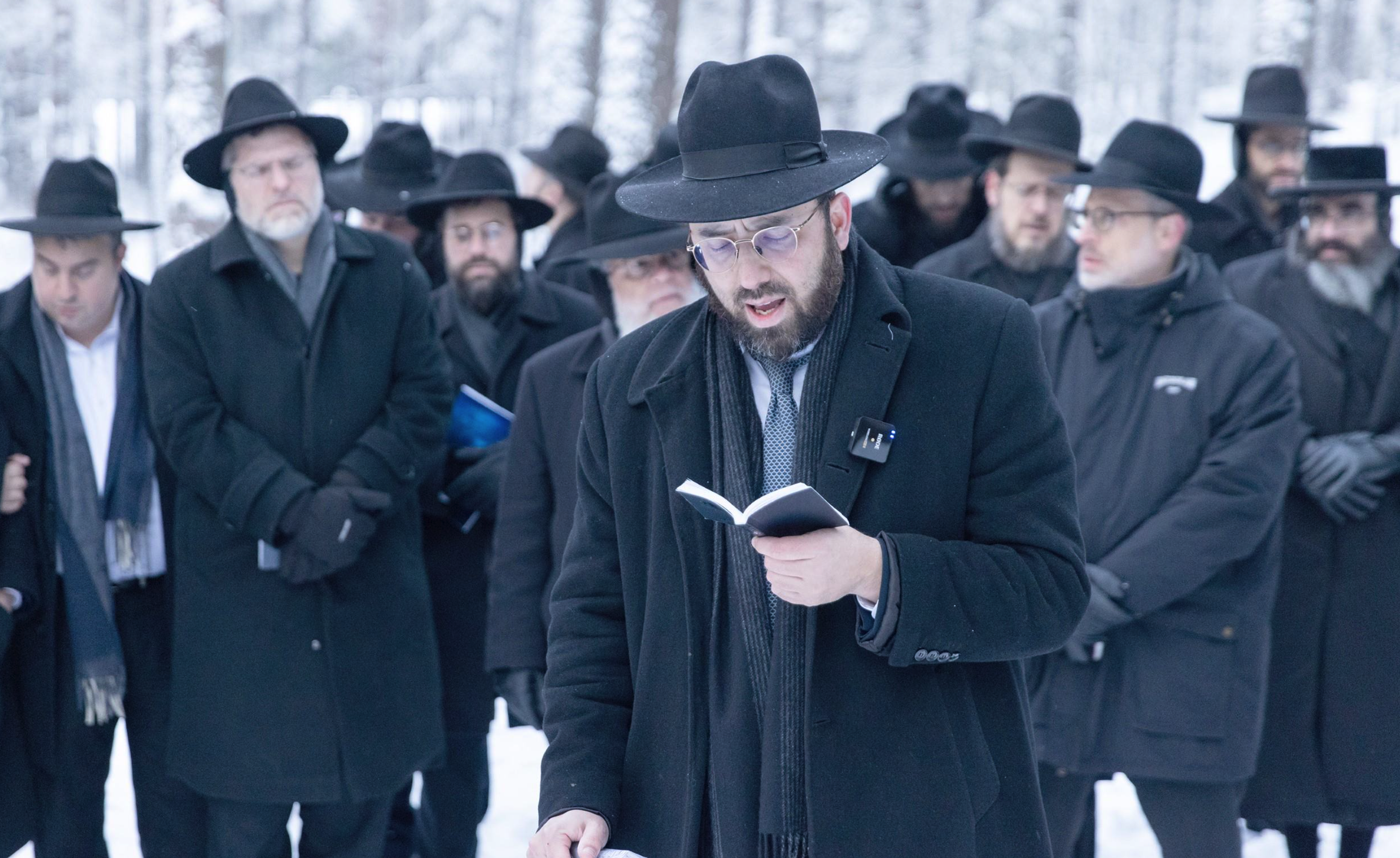 Meanwhile, the group from Eretz Yisrael’s bus travelled to the kever of the Meir Einei Yisrael, the Chofetz Chaim zt”l. Under the bitter cold Belarusian sky, HaRav Shimon Galai shlit”a began the tefillos. With tears and emotion, he led the group, piercing the shaarei shomayim, followed by HaRav Dovid Shimon Zoldan shlit”a and Rav Boruch Sternbuch shlit”a. Rav Masud Ben Shimon shlit”a then said the tefillah composed by HaGaon HaRav Yaakov Hillel shlit”a.