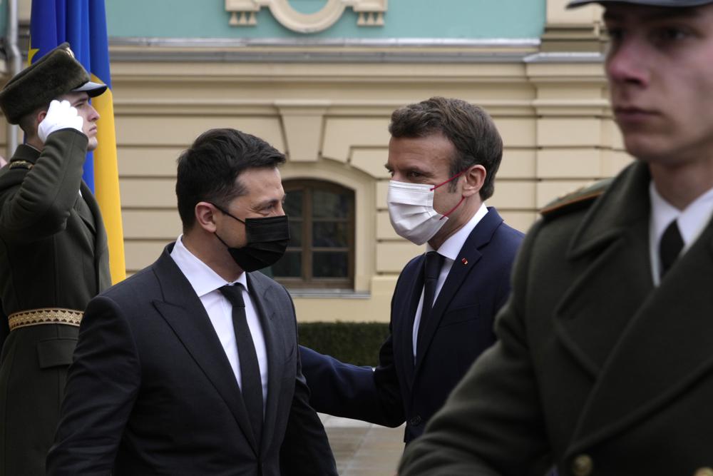 Macron met with Ukrainian President Volodymyr Zelenskyy amid mounting fears of a Russian invasion. Moscow has massed over 100,000 troops near Ukraine’s borders, but insists it has no plans to attack.
