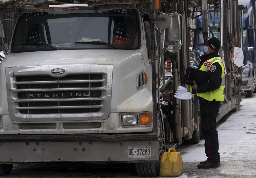 Police in the capital appeared to be following the playbook that authorities used over the weekend to break the blockade at the economically vital Ambassador Bridge connecting Windsor, Ontario, to Detroit. Police there handed out leaflets informing protesters they risked arrest.