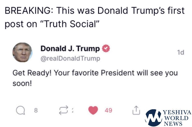 “Get ready! Your favorite president will see you soon,” Trump wrote on TRUTH Social, a post shared on Twitter by his son, Donald Trump Jr., who included the caption, “Time for some Truth!!!”