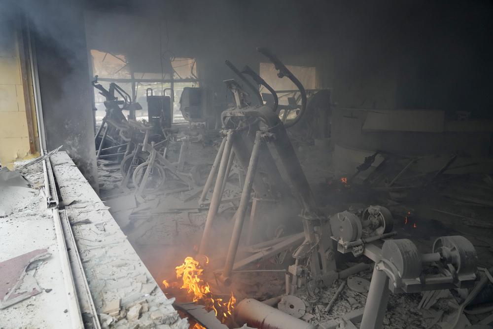 The strike blew off the roof of the police building and set the top floor on fire, and pieces of the five-story building were strewn across adjacent streets, according to videos and photos released by the emergency service.