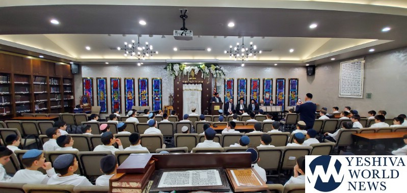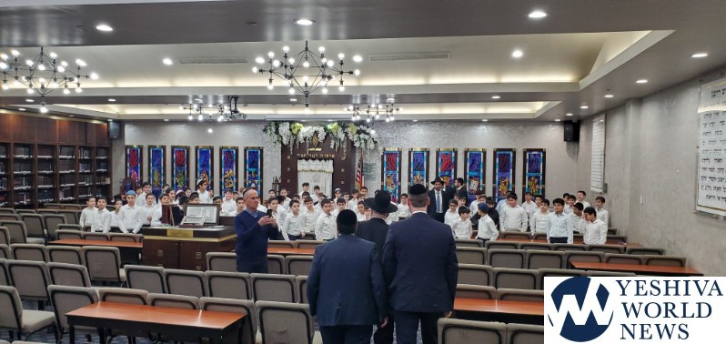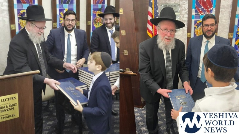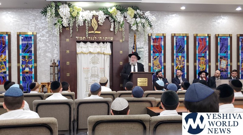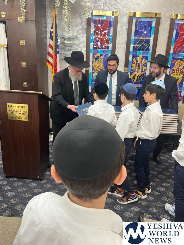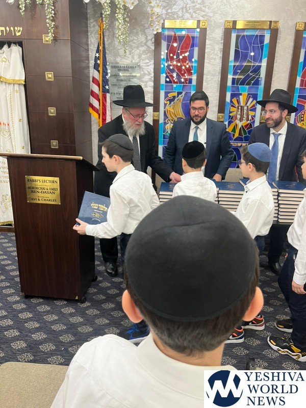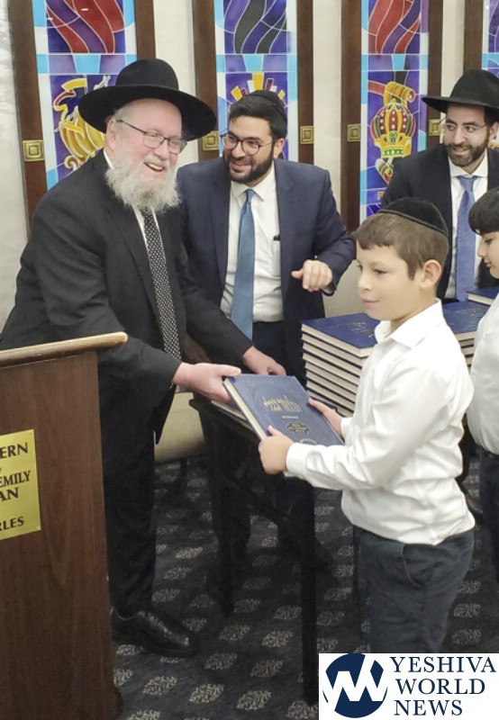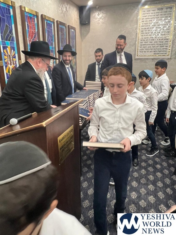 HaRav Elya Brudny, Rosh Yeshiva of the Mirrer Yeshiva visited YDE in Flatbush on Tuesday morning. Rav Brudny spoke to 5th grade students in honor of haschalas gemara. He then gave each boy a Mesechta Bava Metziah – their first gemara.